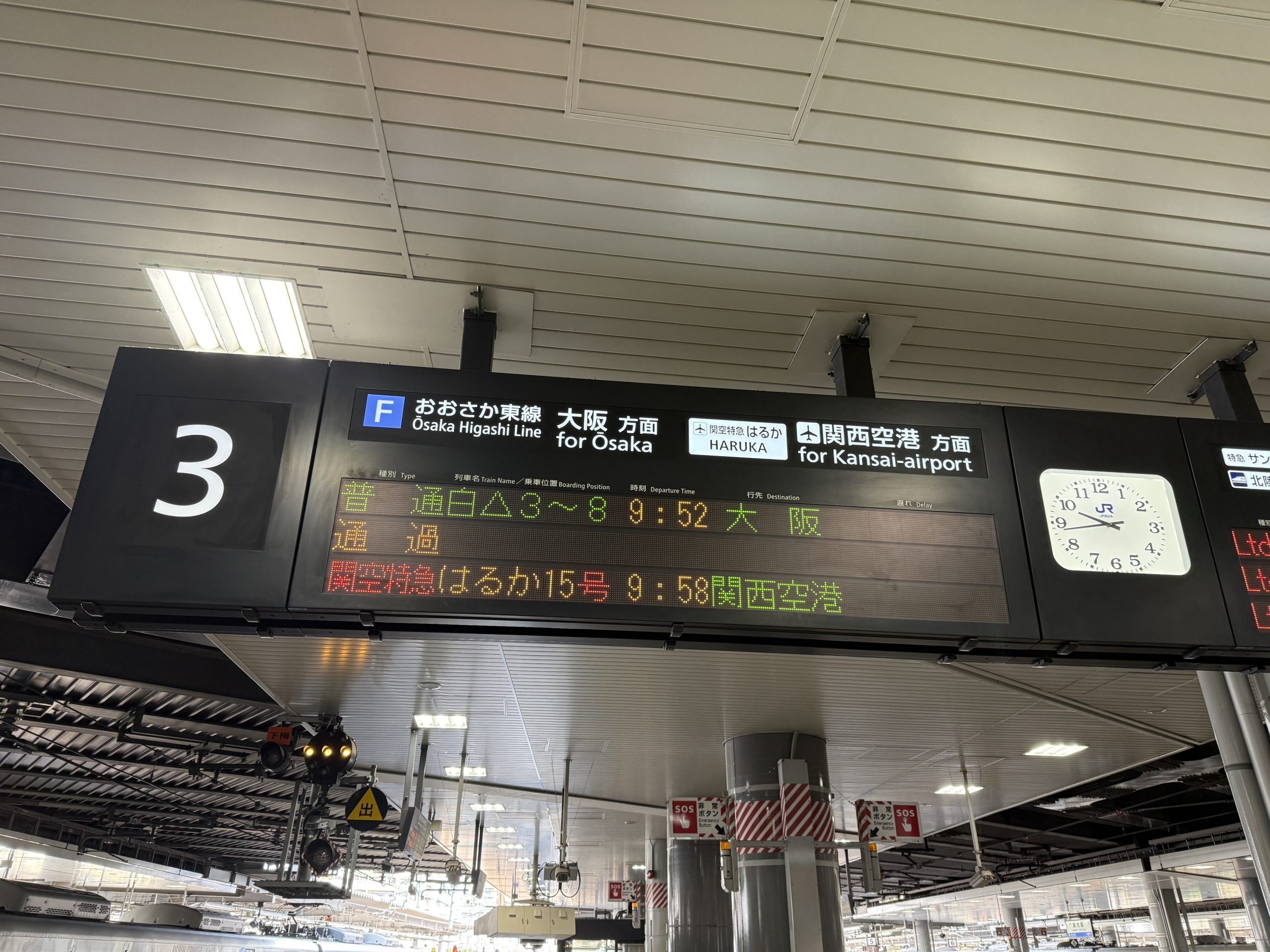 趕緊下車,好不容易問了車站人員才知道,到關西的火車,那一班是「特急」,需要另外買票。而且,我們應該是搭錯列車,真正往關西機場的火車有特別的標示。還好我們有提早一個小時出門,差點就要在日本多待一天了。